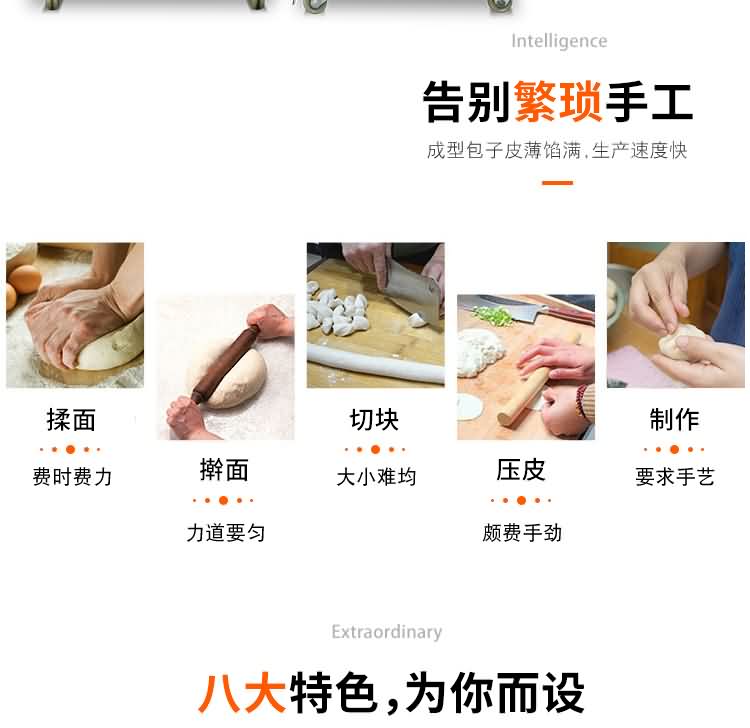 ◆ 民間面食工藝結合現代科技,所做包子、饅頭的密度、氣孔均勻細膩,富有彈性、韌性、口感性和筋度。