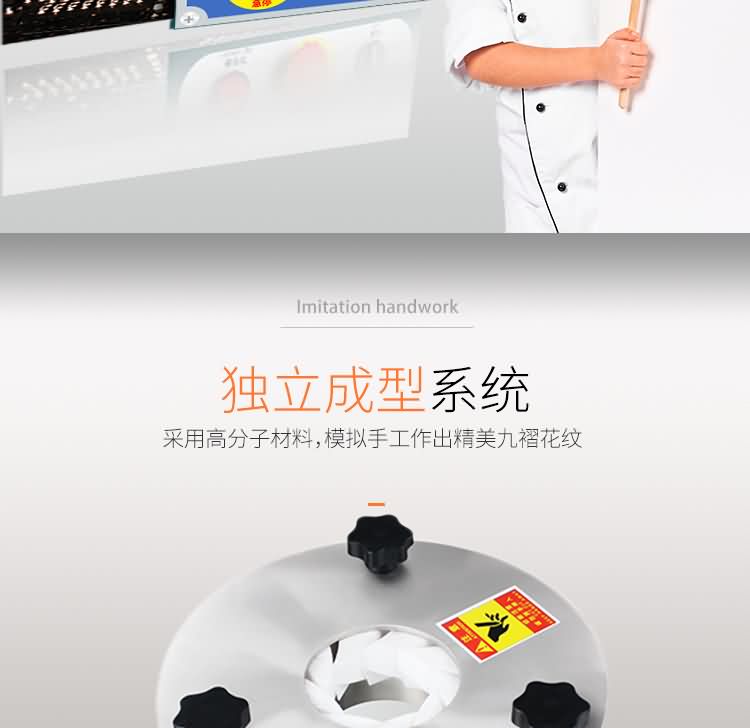 設備不傷面筋、仿手工捏花、比人工制作干凈、衛生、成本低、效率高,是面食行業在高工薪時代的不二之選產品。操作面板可以旋轉、移動方便、占地空間小,適用于各種工作場所。本機提供免費上門培訓指導、安裝、調試、面點工藝傳授。