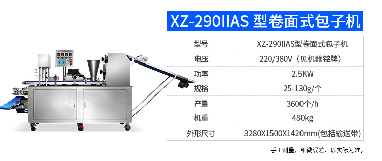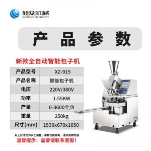 名稱XZ-915全自動包子機 電源220/380V 功率1.55kw 產量0-3600個/h 尺寸1530×670×1650mm 重量250kg 規格 其他