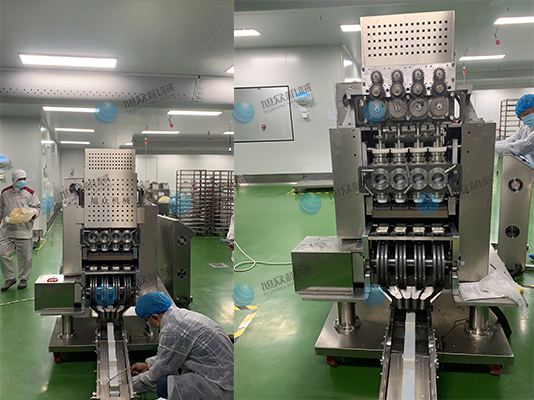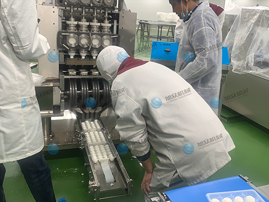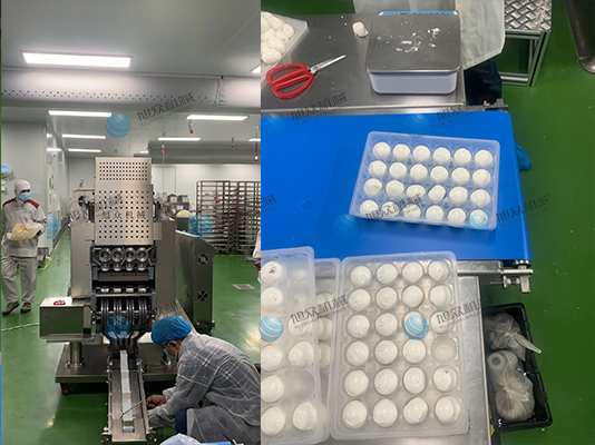 全自動(dòng) 多功能多頭型湯圓成型排盤(pán)機(jī)客戶(hù)使用現(xiàn)場(chǎng)!