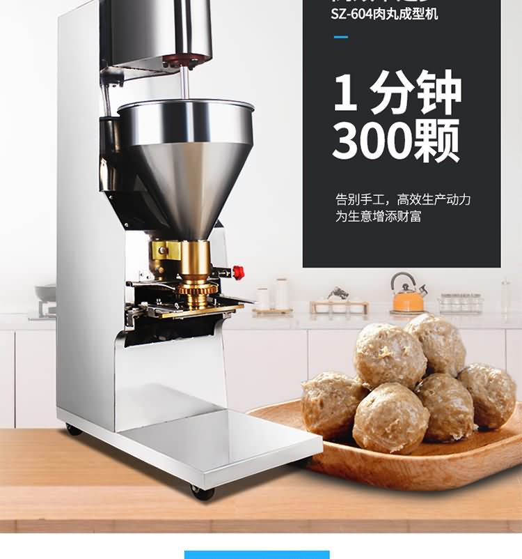 SZ-604肉丸成型機,肉丸成型機采用不銹鋼材質,丸子直徑可達15-35mm,可以制作各類爽脆,有韌性、有彈性的豬肉丸、魚丸、牛肉丸、貢丸、雞肉丸等