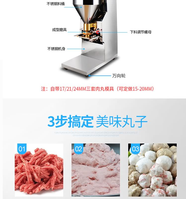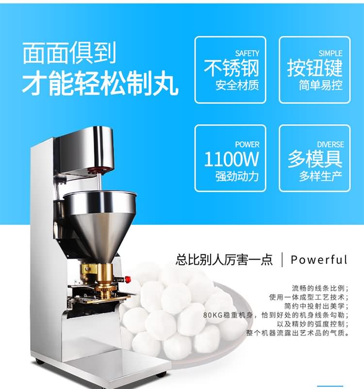 用于制作豬肉丸、魚肉丸、牛肉丸、雞肉丸、貢丸等各種肉丸。