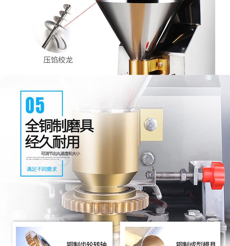 肉丸成型機采用不銹鋼材質,丸子直徑可達15-35mm,可以制作各類爽脆,有韌性、有彈性的豬肉丸、魚丸、牛肉丸、貢丸、雞肉丸等,不僅花色品種繁多,口味可自由變換以外,還在原有的基礎上大大降低了生產成本。