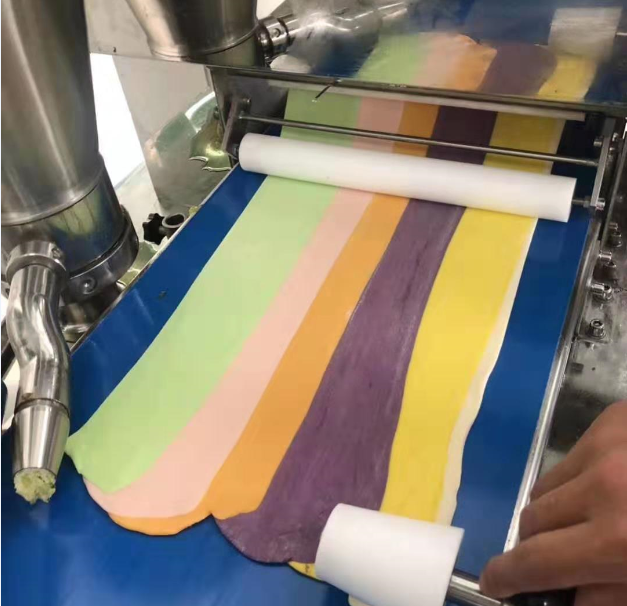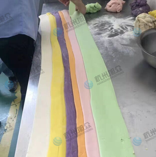 新出一種包子做法,而這種做法只能用卷面式包子機才能做得到,那就是色彩繽紛的五彩包子!多種不同顏色組合在一起的包子耐看口感也不錯!那么我們來看看卷面式包子饅頭機是怎樣做出來彩色包子的:
