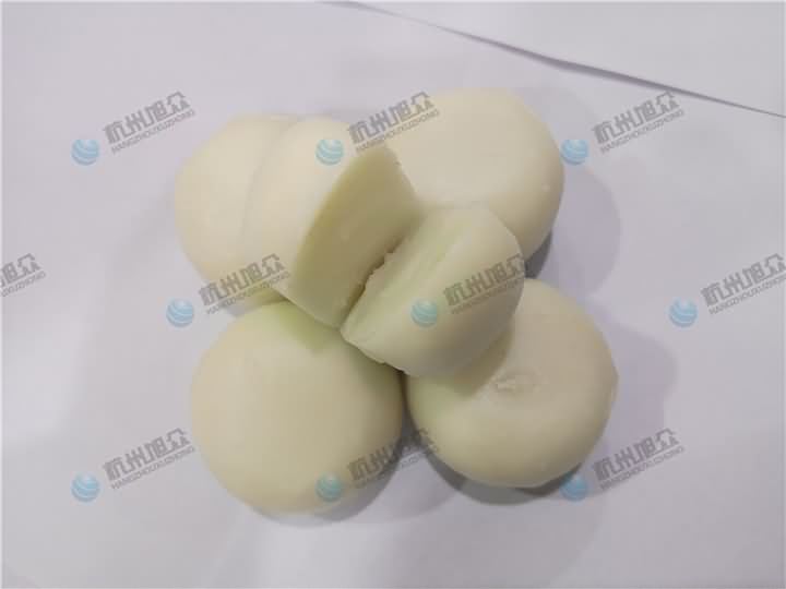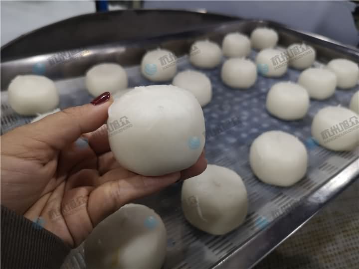 年糕做糍粑,用無餡糍粑機將年糕成型糍粑效果,蒸熟后的年糕經過無餡糍粑機多次絞面后,由一開始的粗糙糍粑變成白胖胖光滑的糍粑,本來客戶就接收粗糙的糍粑成型,結果這么一弄他就更喜歡無餡糍粑機了。