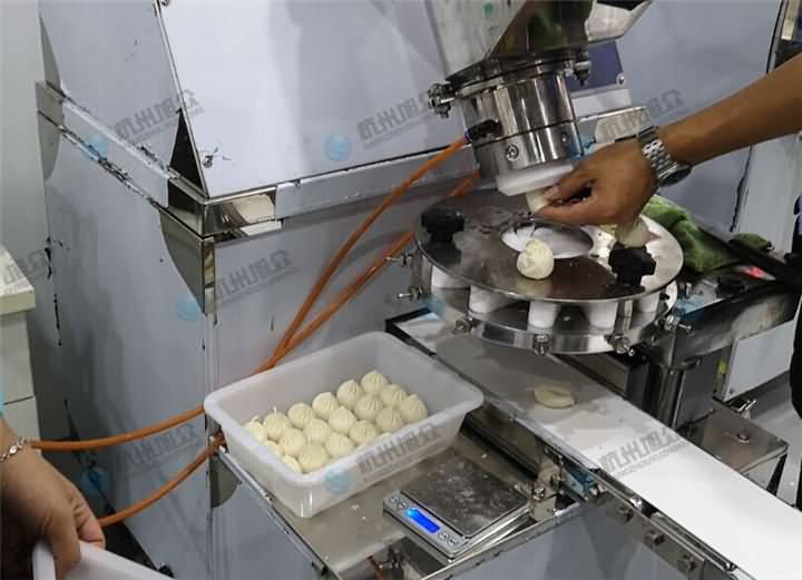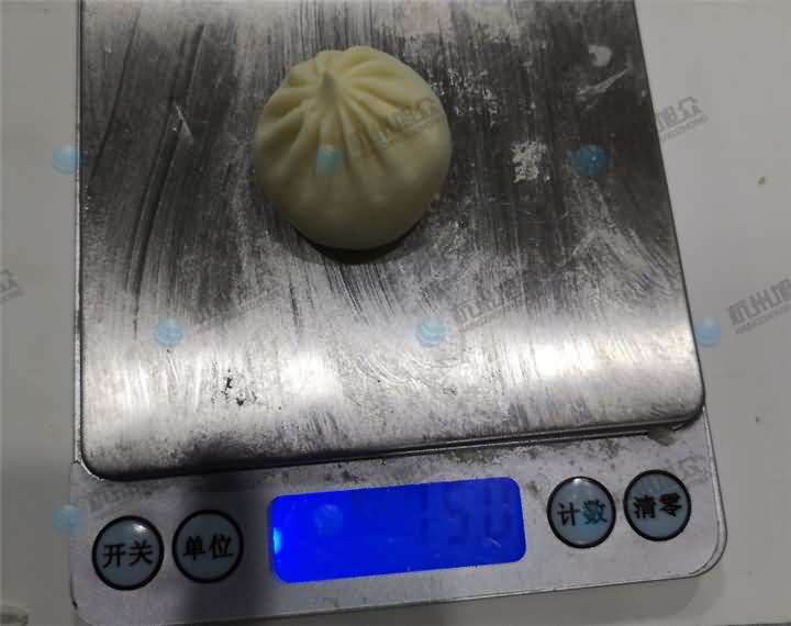 客戶通過師傅更換各種模具做大小不同的包子,100多克的大包,七八十克的,三四十克的,最后更換面餡更小的模具,達到十五克的小籠包,而且做出來的小籠包也是非常的美觀。包子機已經達到客戶所需要的要求,也知道口感跟自己的包子配方有關,他只不過想要一臺能代替人工包包子的機器,于是現場成交定購包子機!