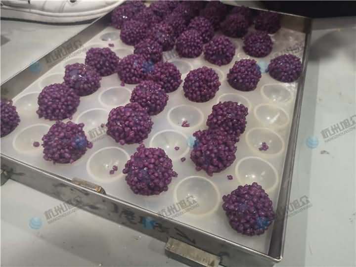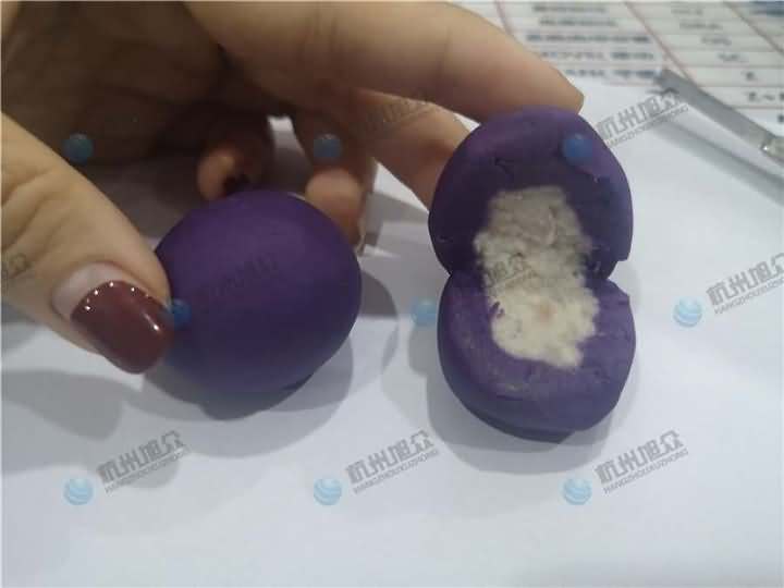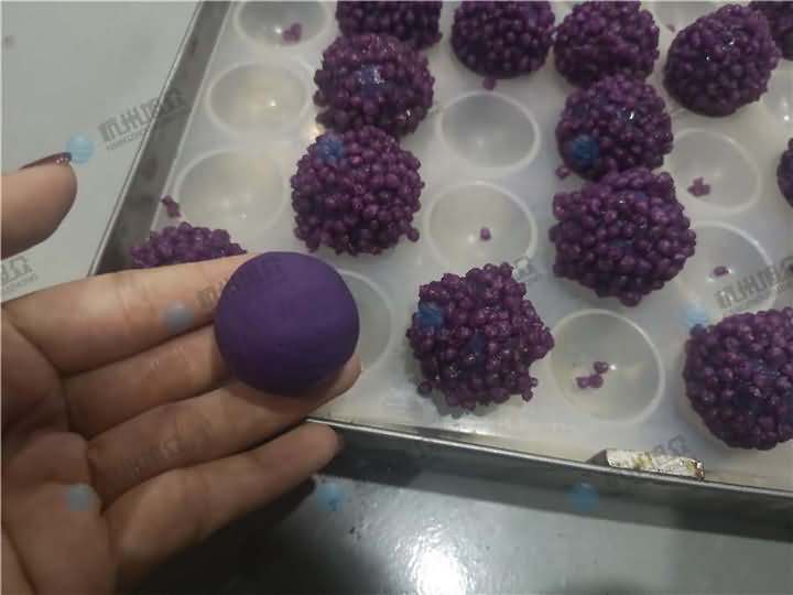 老客戶再次咨詢做紫薯球設(shè)備,之前有購買的糍粑機(jī)不適合生產(chǎn)紫薯球,所以知道想看看湯圓機(jī)做出來的紫薯球效果,物料自行準(zhǔn)備:紫薯面團(tuán)、香芋餡料、雞蛋、各種雜糧米。