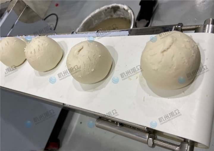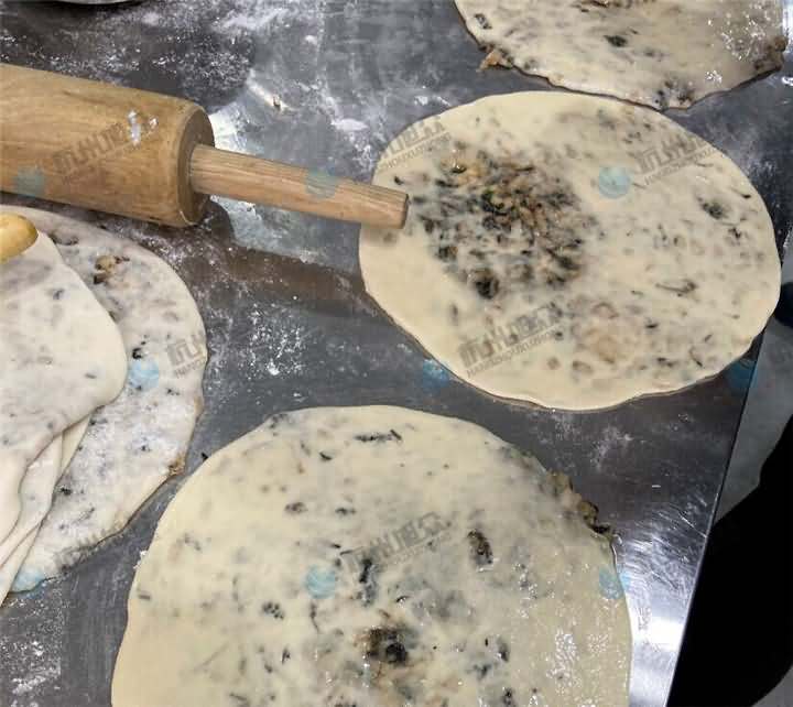 包子機能做縉云燒餅嗎?能做也不能做,該怎么說呢,包子機可以等份切成一個個包餡成品后,再人工將它反復搟面壓成餅狀,有人就覺得到最后反正都是人工來做的,那有必要買包子機嗎?這個需不需要包子機看客戶需求,客戶主要做燒餅的,招了很多員工,有新員工也有老員工,老員工有經驗一手就能包出差不多克重的燒餅,而新員工不行,得一邊拿克重稱著看再反復壓餅,于是便想用機器等份的包餡好成型,再讓員工一個個去搟壓這樣效率明顯要快很多。于是客戶帶著自己的燒餅爐及物料來到旭眾機械廠: