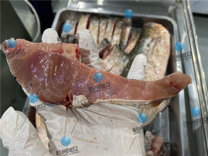 草魚剁塊選擇XZW-130禽肉類剁塊機,該剁塊機專業剁帶骨肉類食品,但除了大骨、豬蹄以外。禽肉類剁塊機分為丁刀組和單刀組,丁刀組剁的是方塊形,而單刀組則是直接塊,丁刀組對于物料要求高,需要物料冷凍后剁塊效果才明顯,就好比如雞架,如若直接將新鮮的雞架通過禽肉類剁塊機剁塊,那就會產生嚴重的連刀現象,一個刀不會直接切到釘板上,因為這樣釘板很容易報廢掉,二個就是雞皮本來就很有韌性,你讓人工去手撕雞皮也得費很大的勁,所以如果需要用丁刀組去剁雞塊、鴨塊的話物料要冷凍哦!而單刀組對于物料的要求就沒有那么高,醬板鴨、鹽水鴨、草魚剁塊用單刀組剁塊效果非常好,那么我們先來看看XZW-130禽肉類剁塊機剁草魚塊效果: