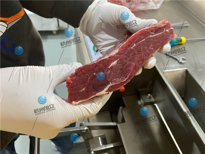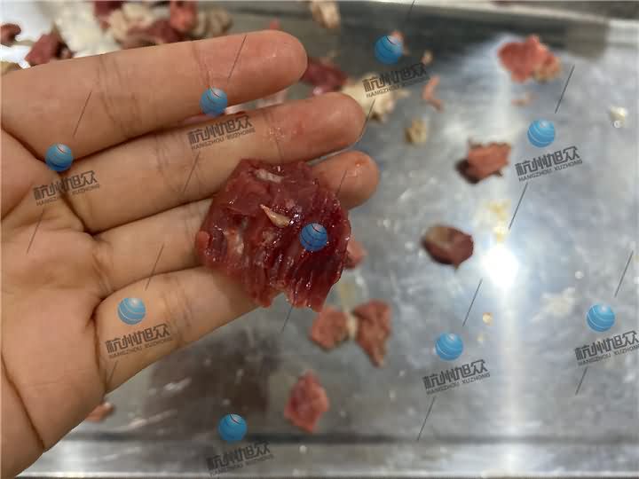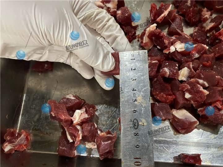 旭眾XZ-QD切丁機(jī)專業(yè)切不帶骨肉類(lèi)丁狀,新鮮牛肉切2cm的丁狀效果: