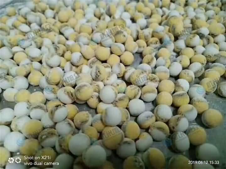 雙色湯圓是怎么做出來的呢?原來是兩種不同的雜糧面粉先分別和成面團后,再手動搟平或者用壓面機壓成面皮后,兩種面皮疊加一起后再通過湯圓機分割搓圓成型便可。