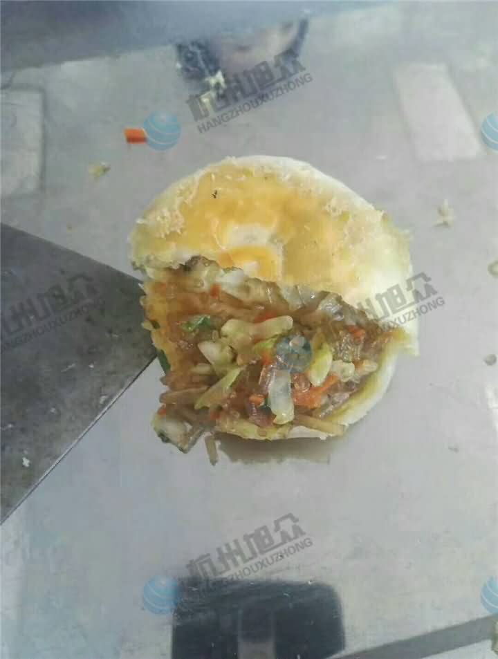 客戶帶著自己的物料及工藝現(xiàn)場(chǎng)用全自動(dòng)酥餅機(jī)生產(chǎn)粉絲包菜餡餅后,再由他本人用油鍋炸完后的效果,當(dāng)我看到這的時(shí)候不由想起來讀書時(shí)候,學(xué)校附近經(jīng)常有賣這種餅,當(dāng)時(shí)好吃到一周至少有三四天早餐都是它,沒想到來到旭眾后,還能親眼見證它制作成型的過程。