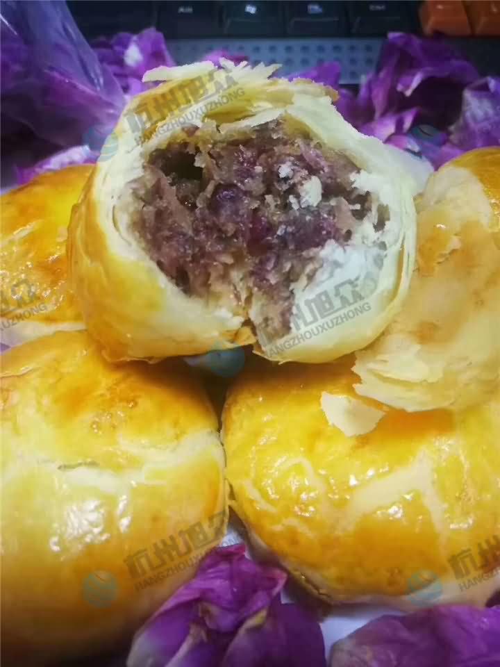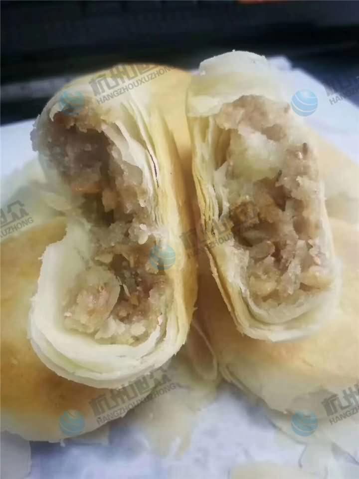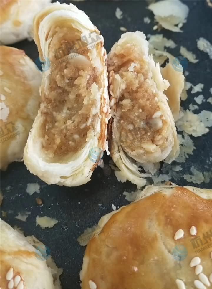 全自動(dòng)酥餅機(jī)自動(dòng)卷皮包餡成型酥餅,烘烤后的酥餅掰開(kāi)能看到層層分明的酥脆餅皮,豐富的餡料,酥餅香脆,任誰(shuí)看了都要忍不住要把它們一個(gè)個(gè)都吃掉。