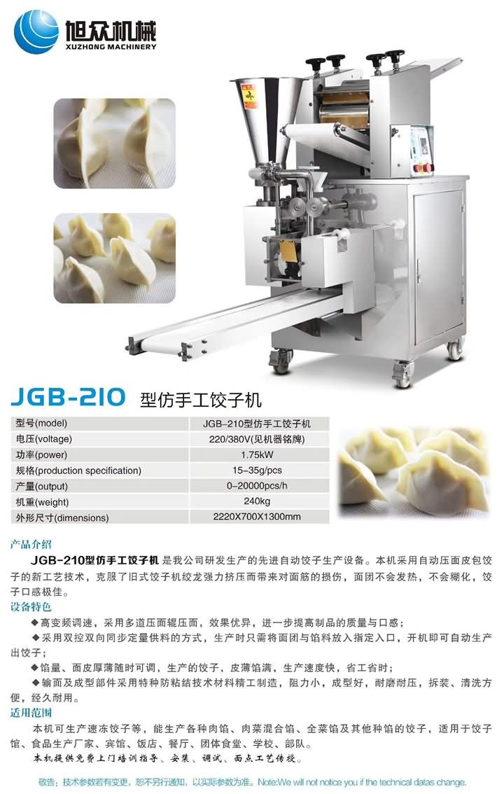 旭眾JGB-210仿手工餃子機做的百財餃子,口感炒雞好哦!歡迎來電預約上門考察餃子機器4008852117