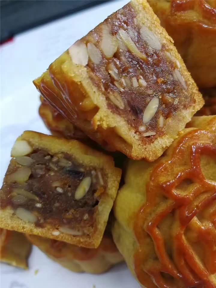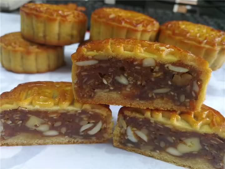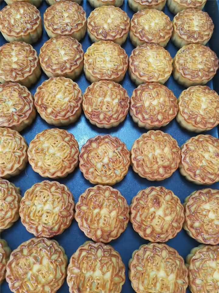 全自動月餅機生產線做的五仁月餅出爐啦!色香味俱全,用機器做的月餅口感不亞于手動做的月餅哦!想要現場品嘗月餅機做的月餅嗎?歡迎撥打4008852117預約上門考察月餅機。