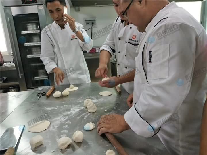 面點大師親自教學(xué),在場的學(xué)生都是購買過酥餅機的客戶,來廠學(xué)習(xí)酥餅工藝,咨詢熱線400-885-2117