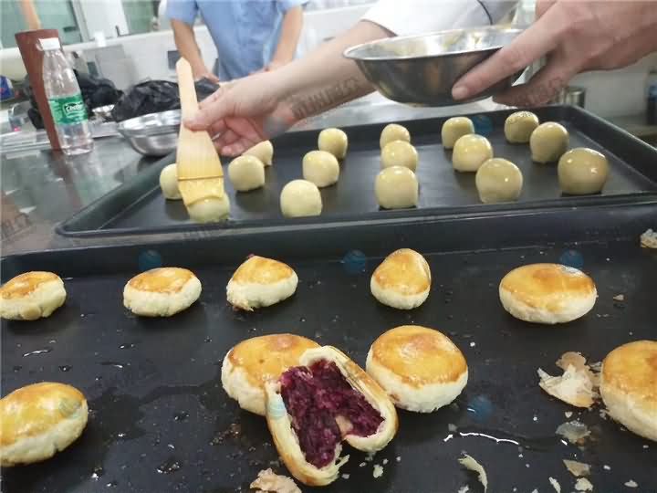 購買酥餅機客戶工廠教學(xué)鮮花酥餅工藝