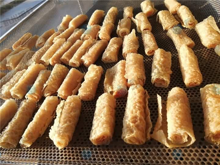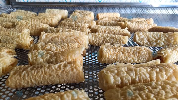 已經(jīng)炸好的豆皮卷如何烘干才好呢?旭眾空氣能烘干機(jī)為您解決煩惱,只需將炸豆皮卷平鋪擺放蒸車中,再推入進(jìn)烘干房內(nèi),設(shè)定好烘干時(shí)間,到時(shí)間烘干房自動(dòng)停止運(yùn)行,便可以看到烘干好的炸豆皮卷咯!
