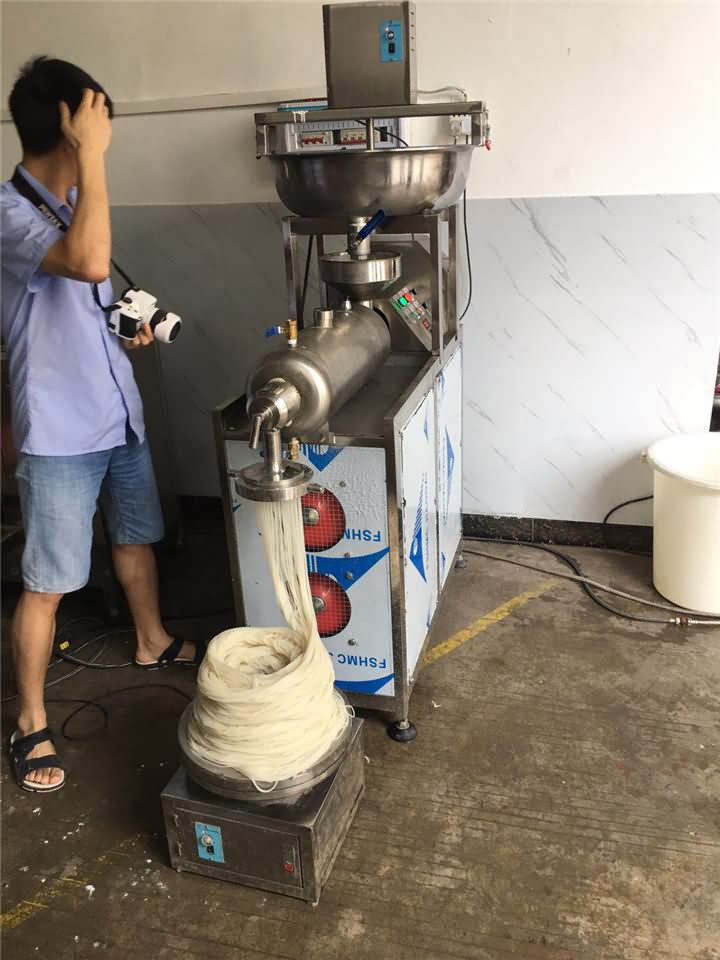 小型米粉機的工序先將米粉磨成米漿,往米粉機加入水后等溫度達到100°后,再由人工將米漿倒入入漿口,稍等片刻就可以自動成型米粉,然后有的客戶就認為倒米漿這個步驟比較麻煩,想要能自動倒?jié){的設備搭配米粉機一起。于是米粉機研發(fā)部門最終研發(fā)出自動下漿攪拌一體的米粉機器!客戶用起來還很滿意,這不剛剛發(fā)來了他在操作米粉機做米粉的效果: