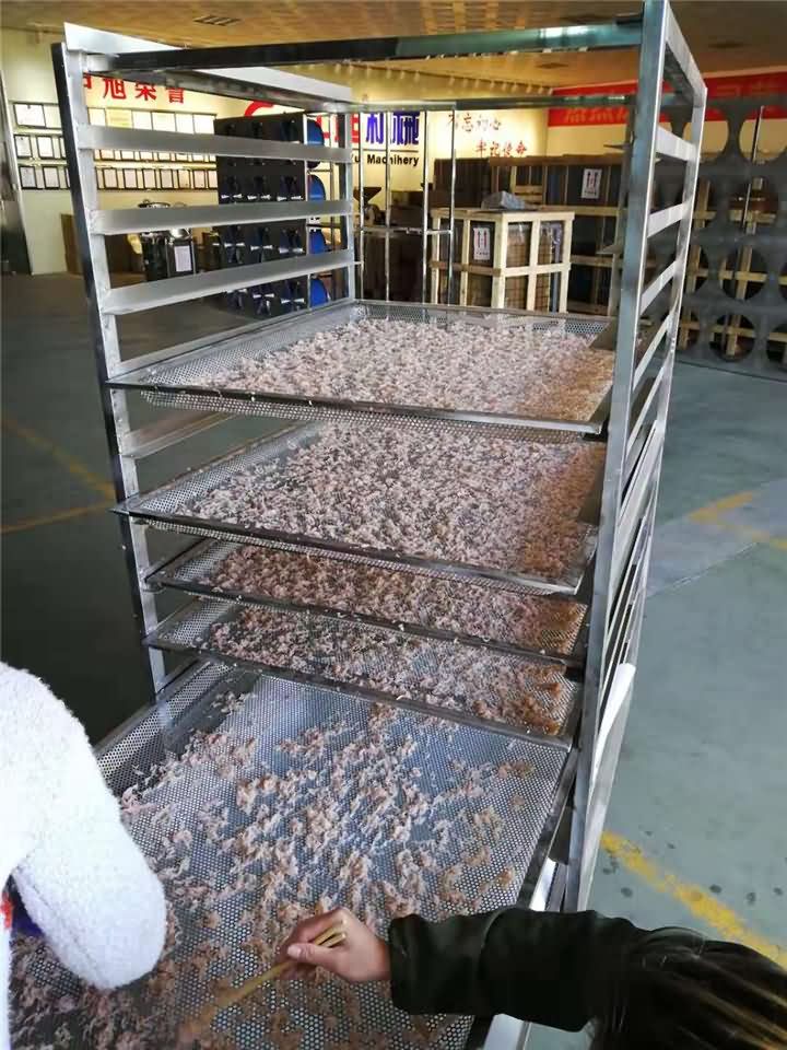 吳老板在網上搜索蝦米烘干機找到了旭眾機械,再知道空氣能烘干機提供現場試機,直觀蝦米烘干效果后,二話不說第二日便帶著他的小蝦米來到工廠,因為蝦米數量不同烘干的時間也不一樣,具體的蝦米烘干工藝時間可在定購烘干機咨詢師傅,空氣能烘干機免費培訓烘干工藝技術培訓哦!