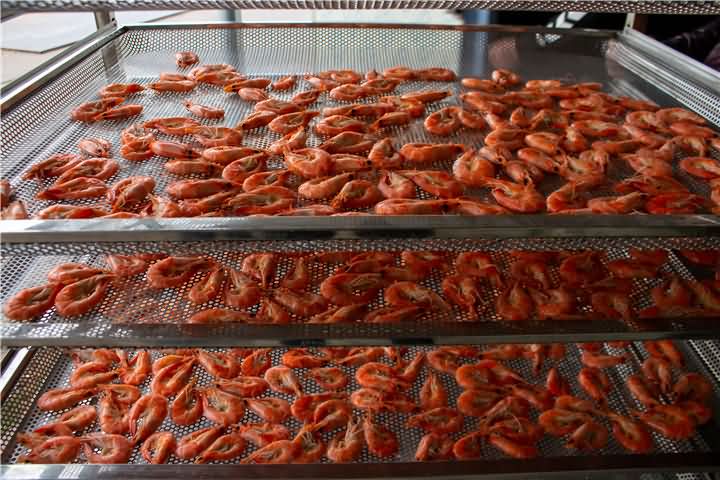 海鮮烘干該選擇什么樣的烘干方式呢?平常的不帶味的食品都是用高溫烘干效果,海鮮如果你還使用高溫烘干就會導致發臭的問題,那么該如何烘干呢?自然低溫高效烘干房是不錯的選擇!針對海鮮、煙熏肉等食品烘干。那么我們來看看烘干房低溫烘干蝦的前后對比效果: