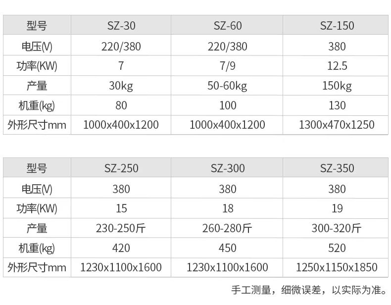 生產快,出品率高,型號多,投資規模可大可小,適用于個體、鄉鎮加工廠及城市食品加工。
