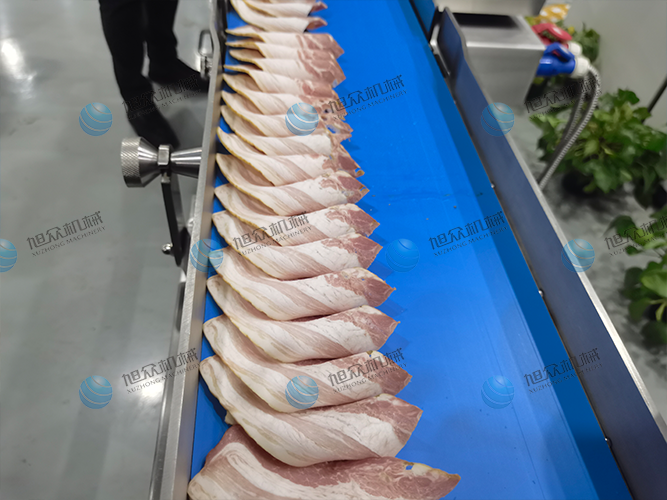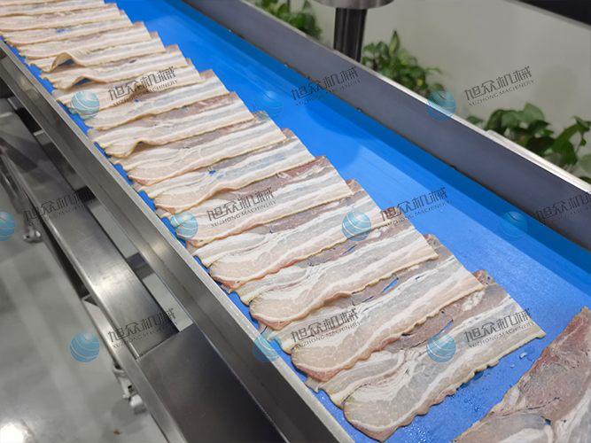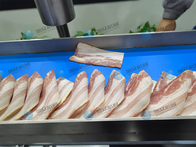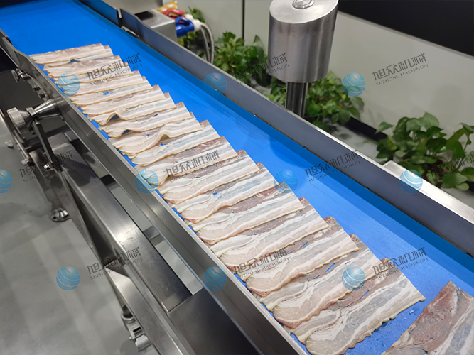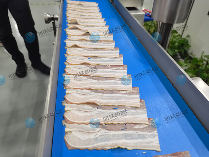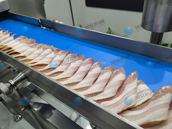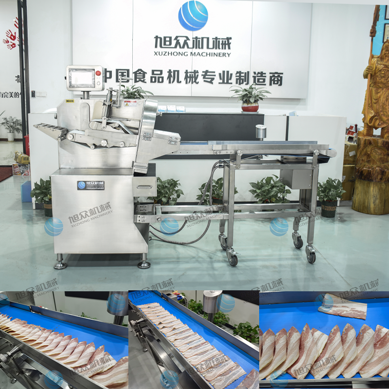 多功能熟肉切片機(jī)模擬手工切片的原理采用變速箱傳動(dòng),自動(dòng)進(jìn)料的原理,自動(dòng)研制而成。適合于各種熟肉,微凍肉,魷魚等等或者切臘腸臘肉牛肉等肉類;牛肉加工廠等需大量切牛肉片的客戶可以考慮使用這款GC-168切片機(jī),該機(jī)不僅完善了單刀切片效率慢和不均勻的難題,還實(shí)現(xiàn)了多樣高效切肉片,還升級(jí)加入分份功能。以下是某煙熏培根加工廠專用旭眾GC-168切片機(jī)切培根片的效果,如看圖不信可來杭州旭眾實(shí)地考察,自備物料現(xiàn)場(chǎng)試機(jī)或致電預(yù)約親自試機(jī)!預(yù)約客服熱線400-885-2117