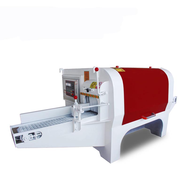 6.原木多片鋸上下軸鋸片,分攤鋸切原木的面積,讓鋸口更小,更省材。自動分中,即適合中間開方料兩邊開片,也可全部開片。厚度均勻,鋸切成品表面光滑平整,無需再進行壓刨,不需要專業帶鋸師傅,是帶鋸效率的多倍。