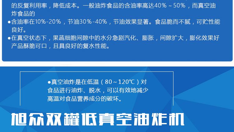 ●真空油炸是在低溫(80~120℃)對食品進行油炸、脫水,可以有效地減少高溫對食品營養成分的破壞。